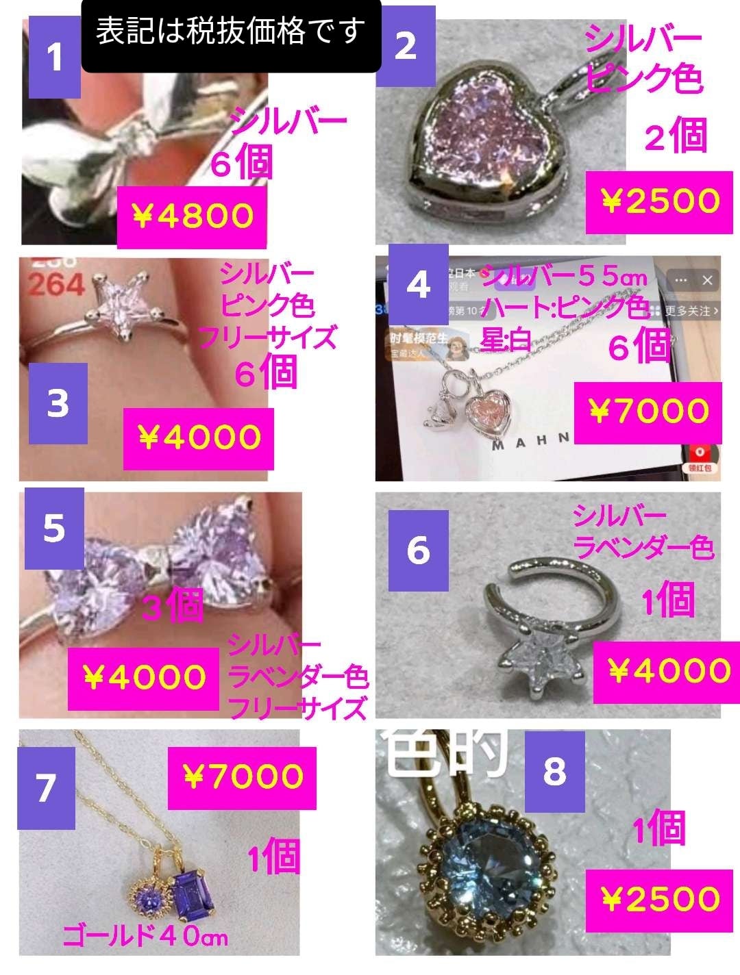 ④ネックレス 7,000円+税 ×6個
