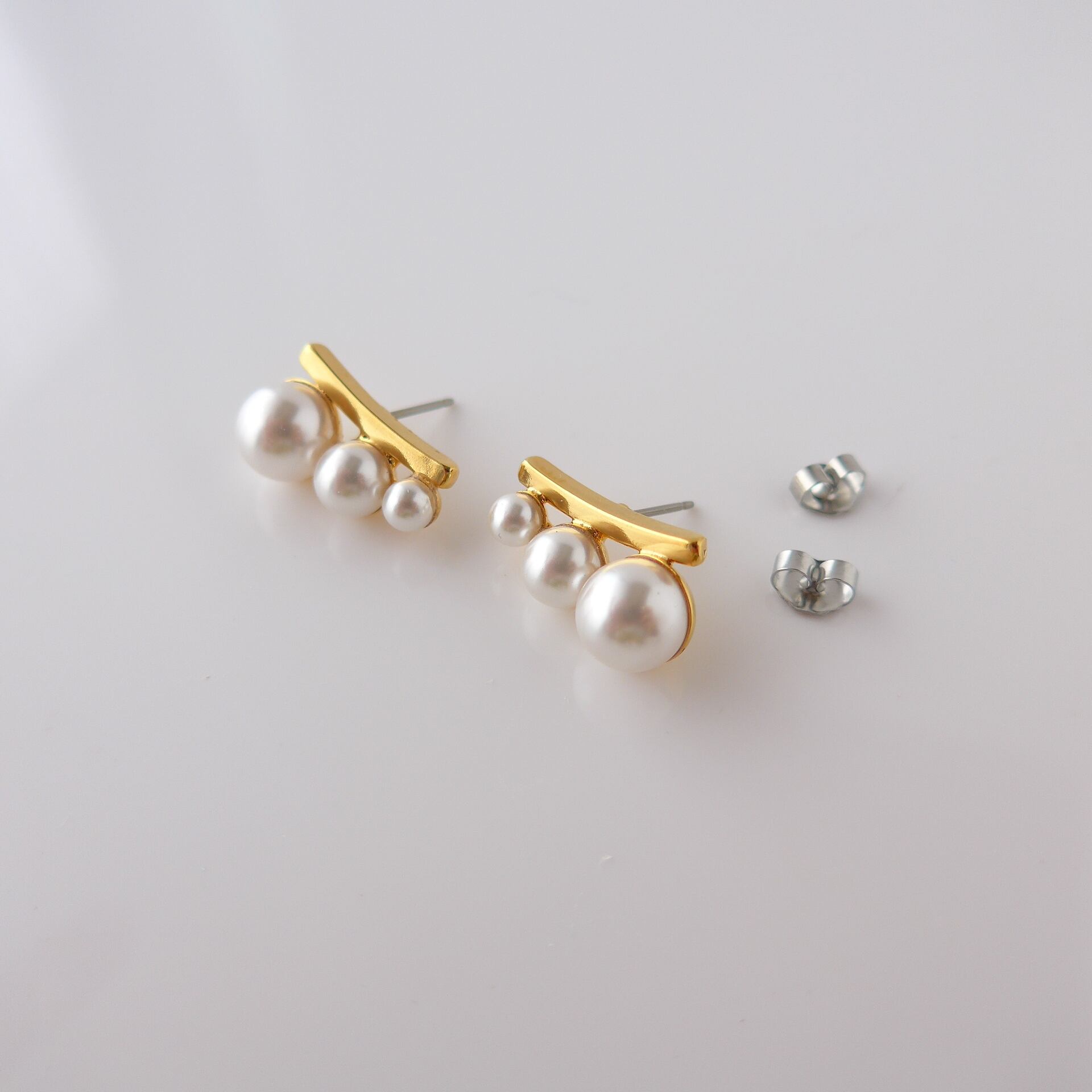 ピアス、イヤリング共に、パールを耳のラインに沿うように横ならびでつけることも(写真1枚目)、パールをお顔のラインに沿うように縦並びにつけることも(写真2枚目)できる2WAYデザインです。