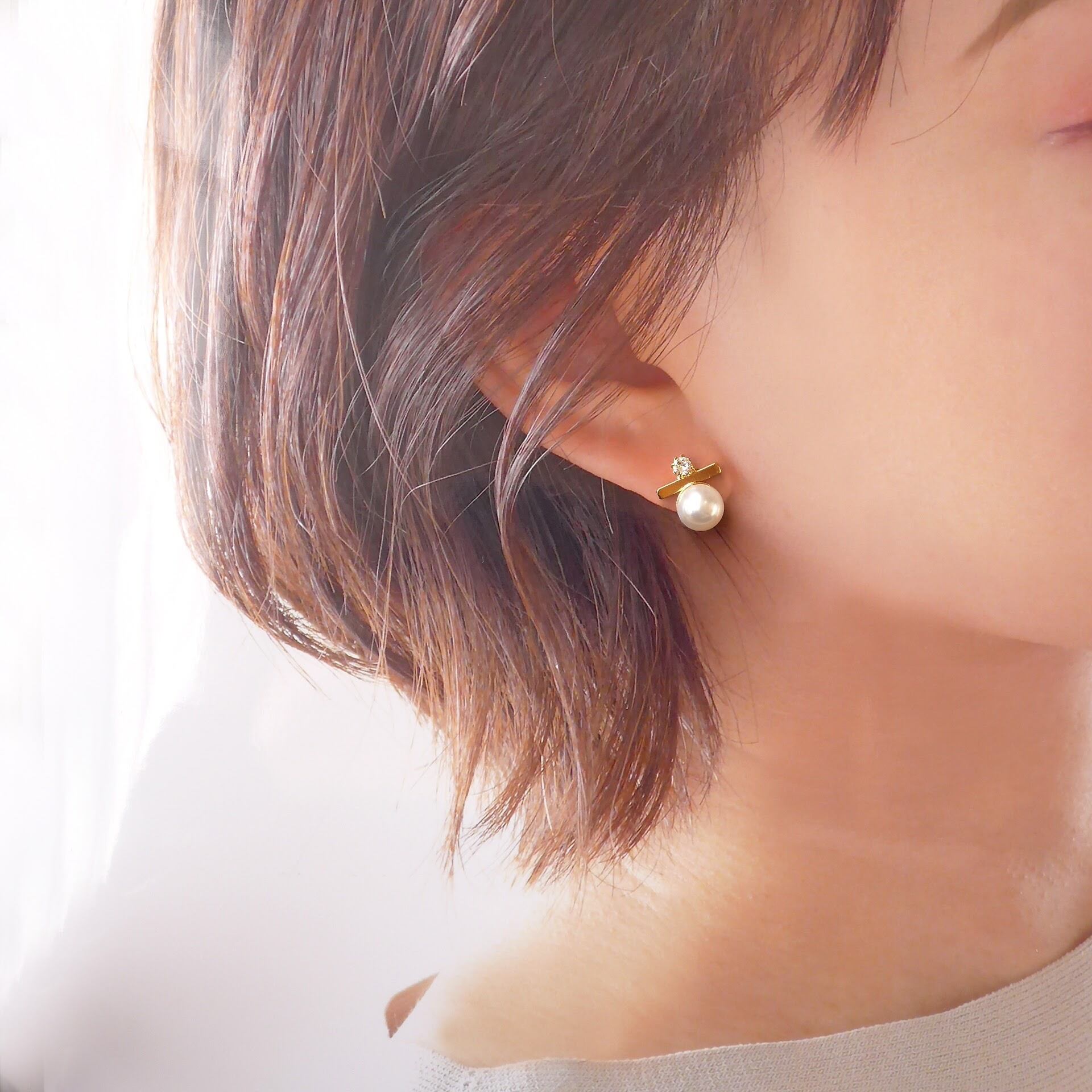 8mmのパールとスティックがアクセントになるシンプルながらおしゃれなデザイン。