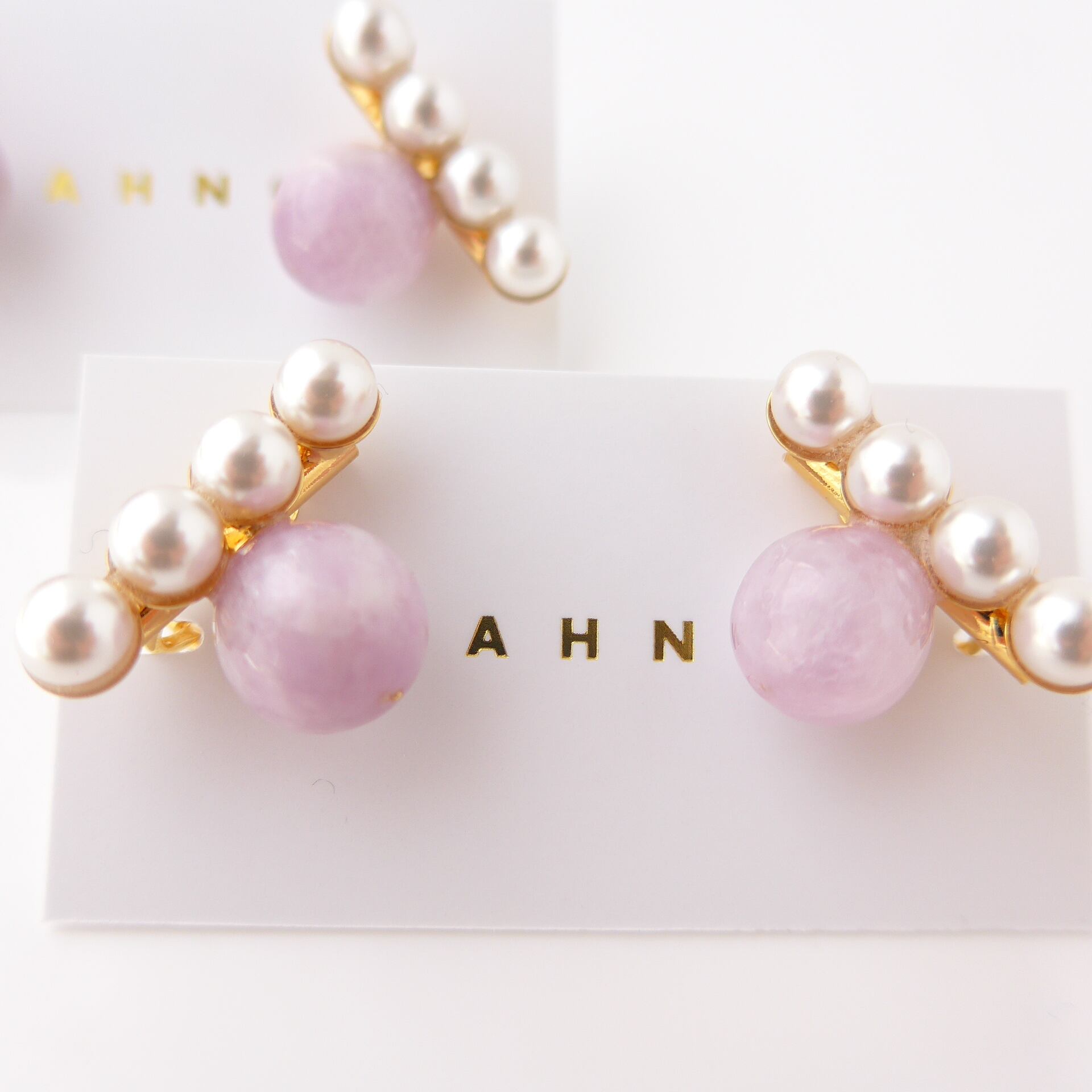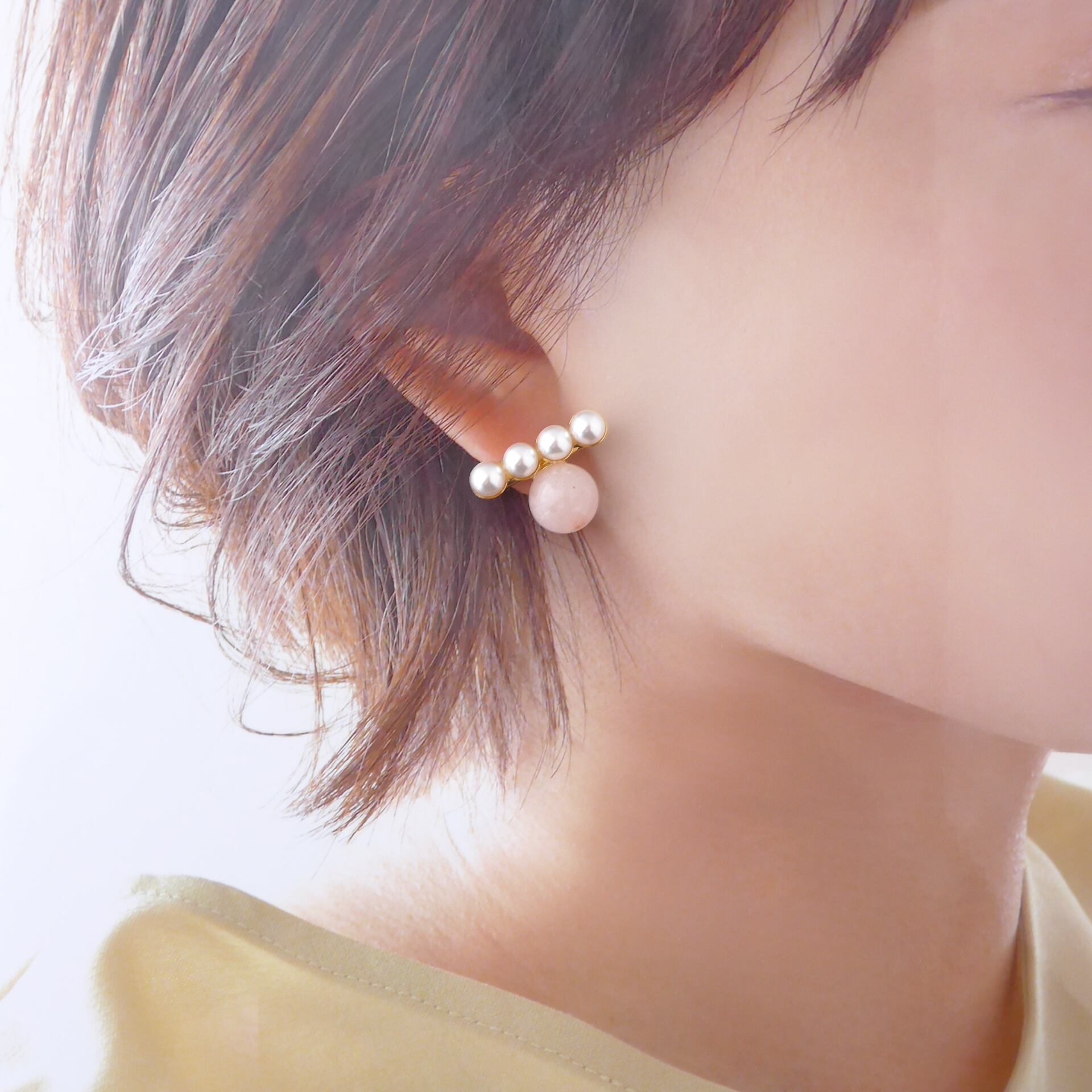 ポテンとした大粒の天然石にスワロフスキー社製のクリスタルパールを組み合わせたおしゃれなデザインです。