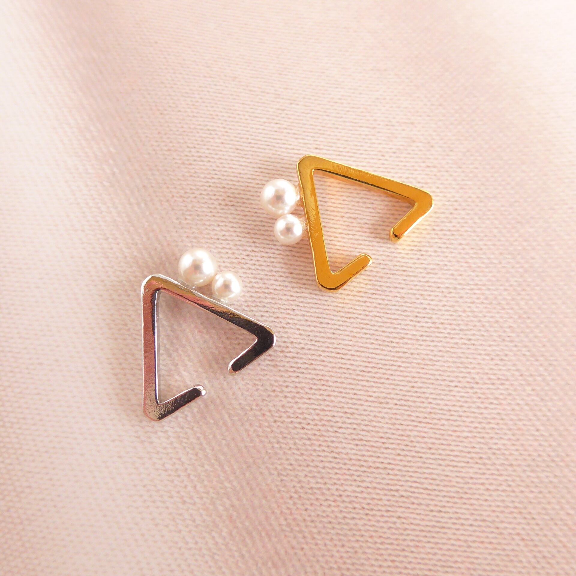 スタイリッシュなトライアングルのモチーフに小粒のクリスタルパールがついたイヤーカフです。