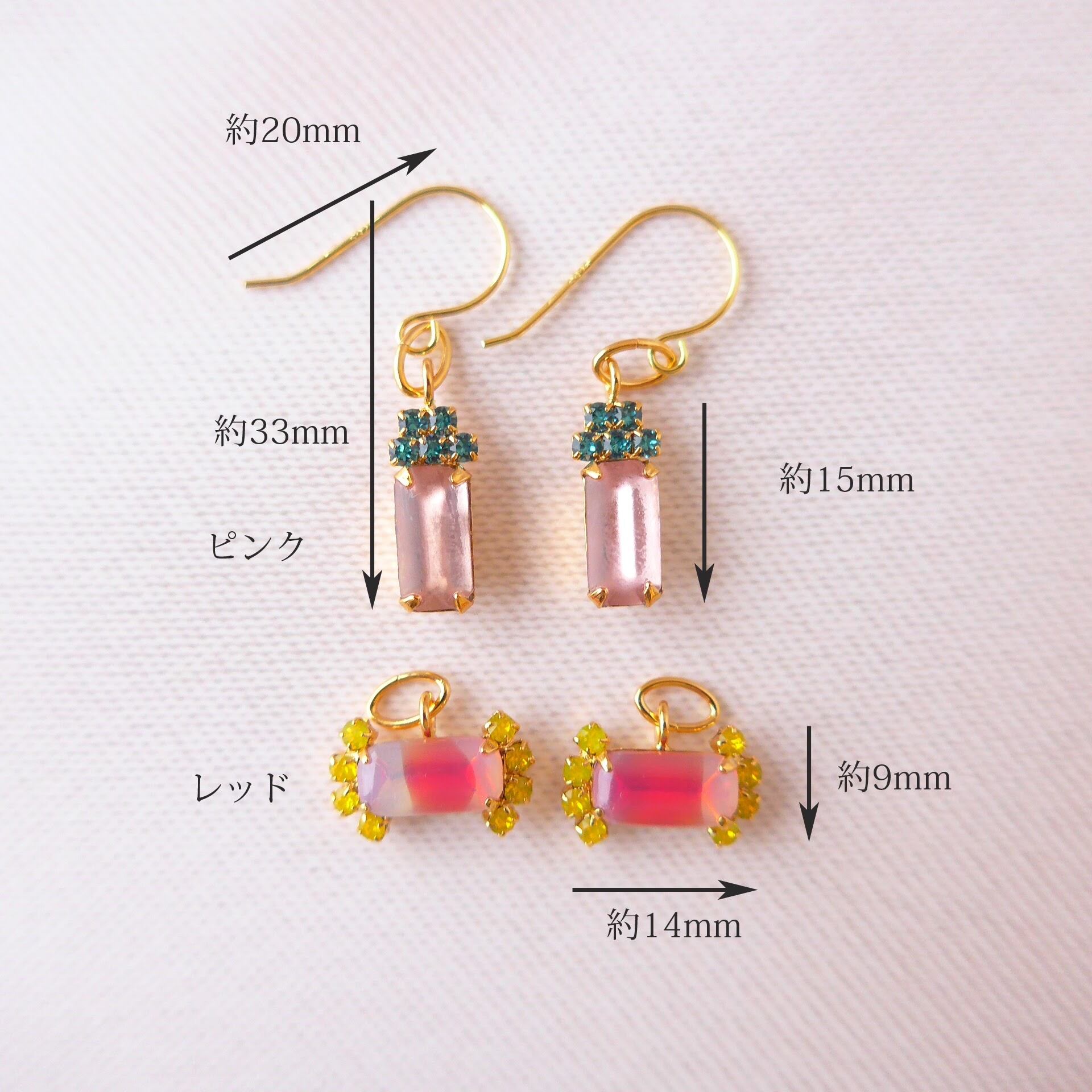 ヴィンテージ素材のガラスストーンにスワロフスキーを組み合わせたカラフルで可愛らしいデザインのドロップシリーズ。